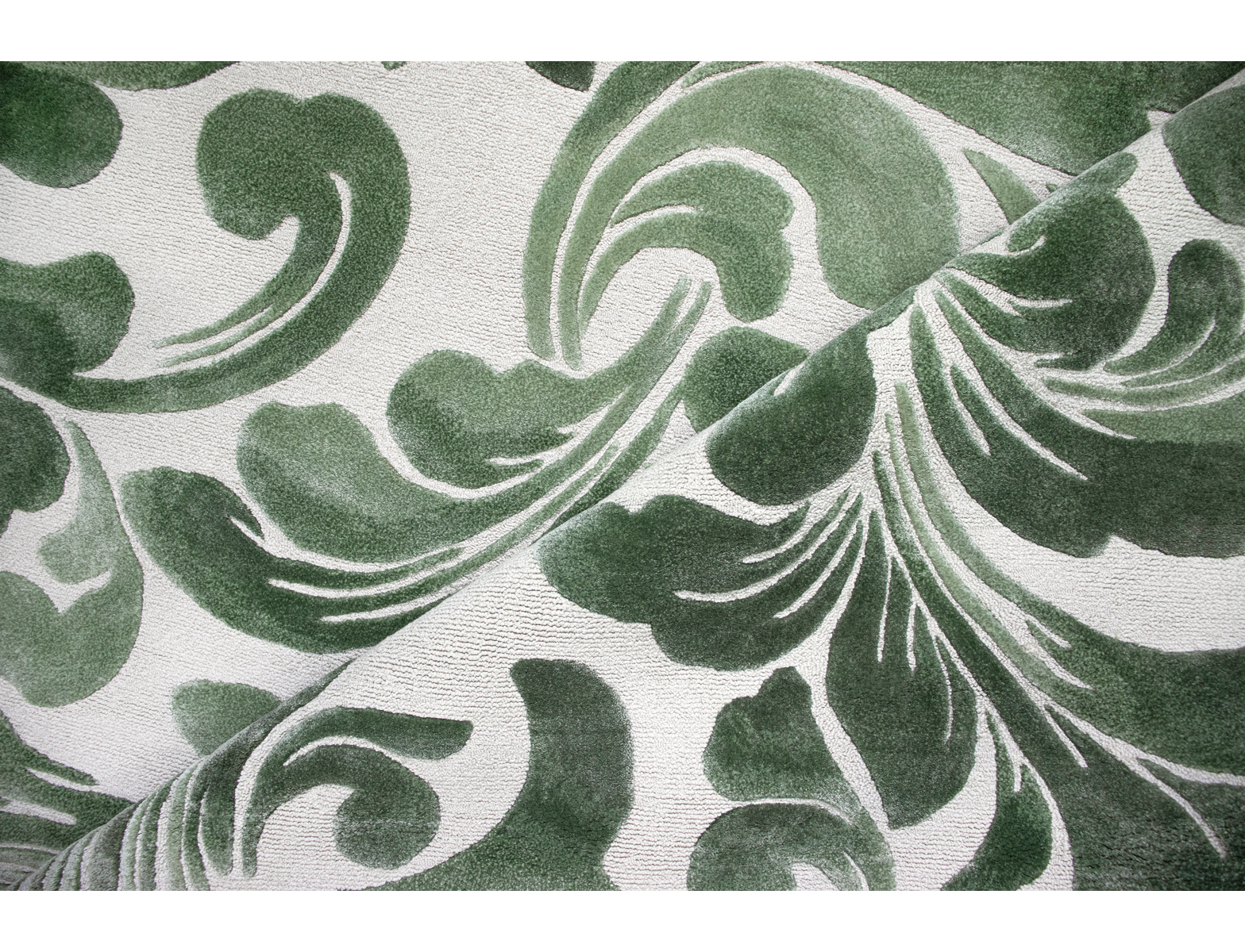 Eau de Jade captures the freshness of French elegance with a refined water-green hue. The damask pattern is delicately reinterpreted in a contemporary way, offering a soothing and refined presence. Eau de Jade is Superior Handtufted in Loop Bamboo Silk and Bamboo Silk Relief. This unique rug, evokes serenity and timeless grace.
