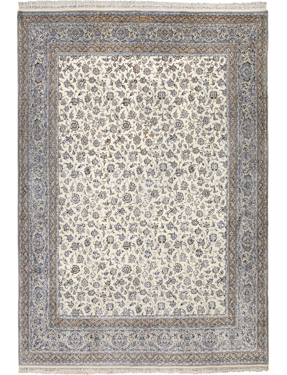 This Nain Habibian rug is part of the Heritage Antique Collection by Sahrai. This unique rug reflects the refined weaving tradition of Nain, one of the most celebrated rug-producing centres in Iran. This Nain Habibian rug is one of the finest examples of Nain craftsmanship, admired for its precision and elegance. Set against an ivory field with no medallion, this rug is enriched by a delicate all-over floral pattern and a finely detailed border.