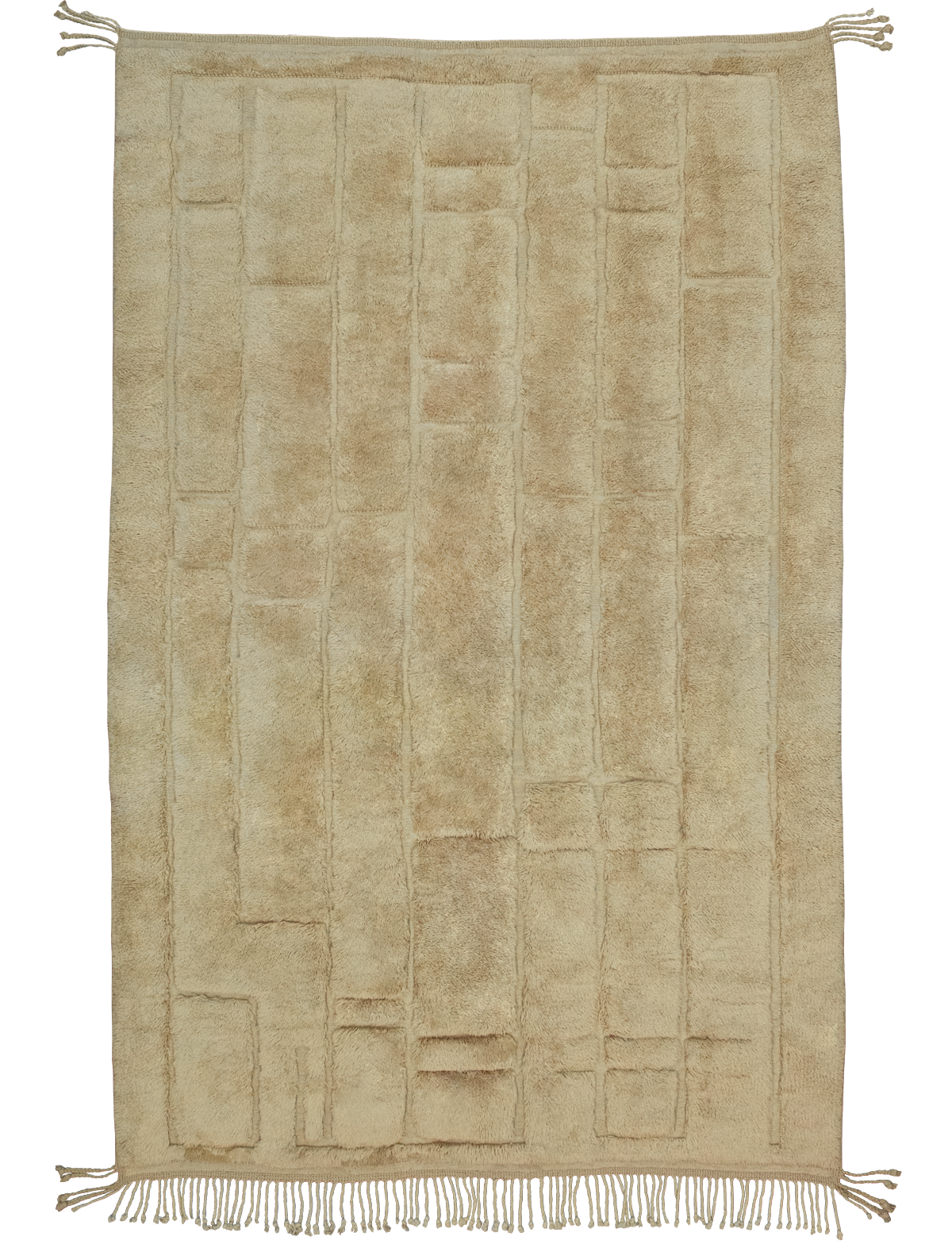 Adilah is a Berber Moroccan Rug part of the Mamounia collection by Sahrai – a Collection conveying the spirit of North-African nomadic tribes. Finely handknotted in wool, it features a two-pile-height geometric pattern. Its refined neutral palette—ranging from warm ivory to soft sand—enhances the depth of the design, offering both visual and tactile richness. If you need a size, shape or color not listed here, you are welcome to place a bespoke order.