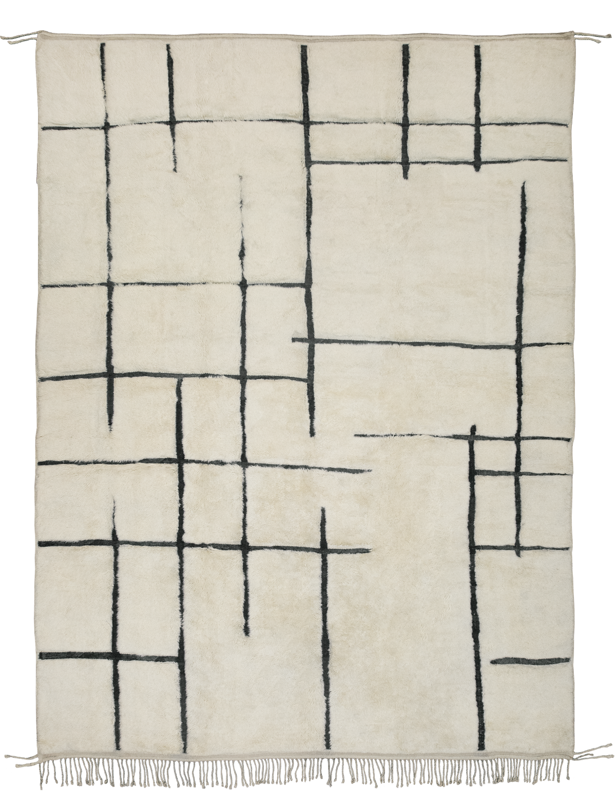 Azrou is a Berber Moroccan Rug part of the Mamounia collection by Sahrai, a Collection conveying the spirit of North-African nomadic tribes. Handknotted in Wool on Wool, the rug is defined by its ivory texture, animated by irregualr charcoal lines that create rhythm, contrast, and a strong architectural presence. If you need a size, shape or color not listed here, you are welcome to place a bespoke order.