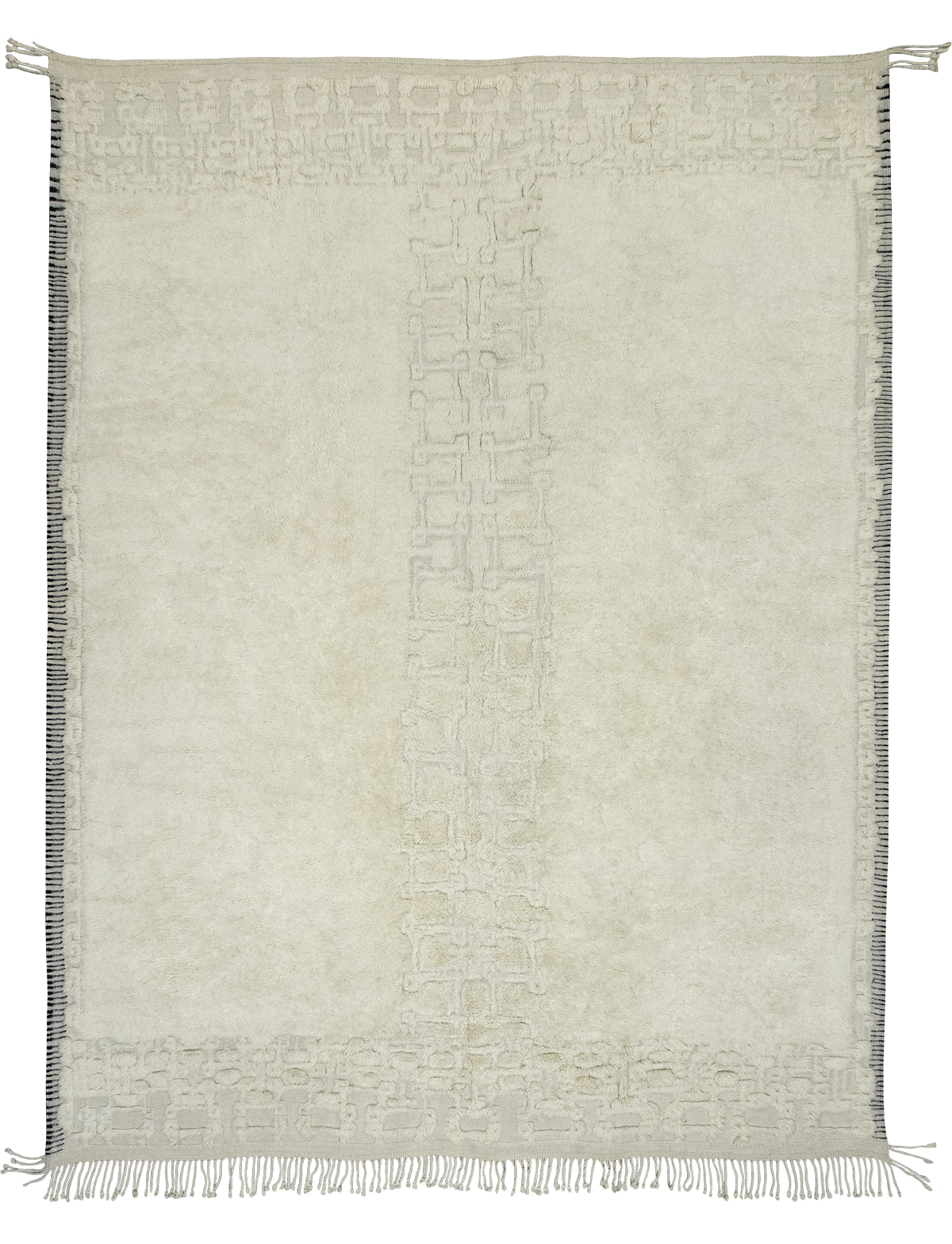 Lina is a Berber Moroccan Rug part of the Mamounia collection by Sahrai – a Collection conveying the spirit of North-African nomadic tribes. Handknotted in Wool on Wool, this piece is defined by its delicate ivory palette and textural motifs, which emerge gently across the surface and along the borders. If you need a size, shape or color not listed here, you are welcome to place a bespoke order.
