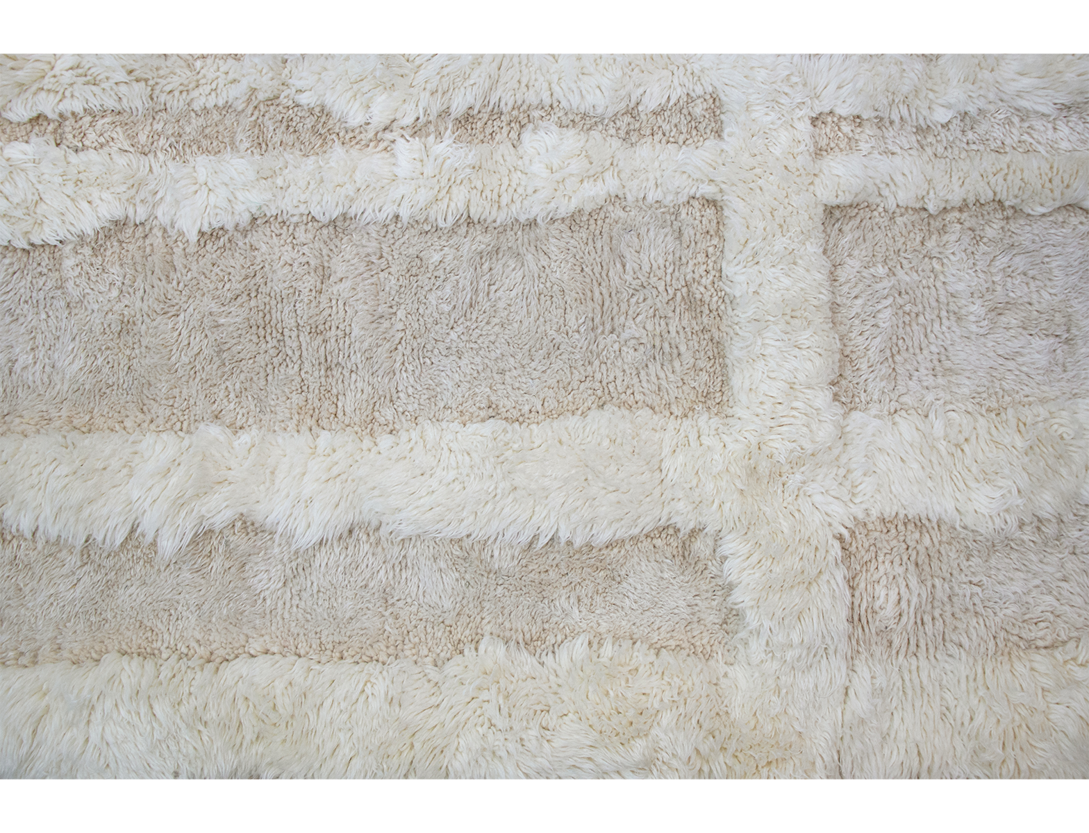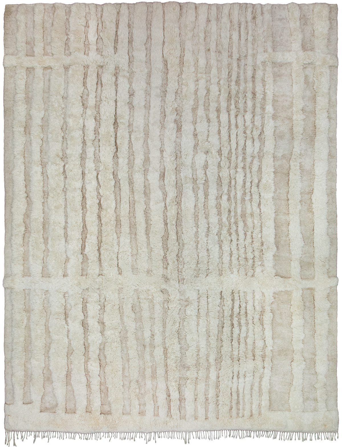 Nabila is a Berber Moroccan Rug part of the Mamounia collection by Sahrai – a Collection conveying the spirit of North-African nomadic tribes. Its design is defined by vertical and horizontal lines with tonal variations of cream and beige, creating a delicate pattern across the surface. Nabila is Handknotted in Wool on Wool. If you need a size or shape not listed here, you are welcome to place a bespoke order.