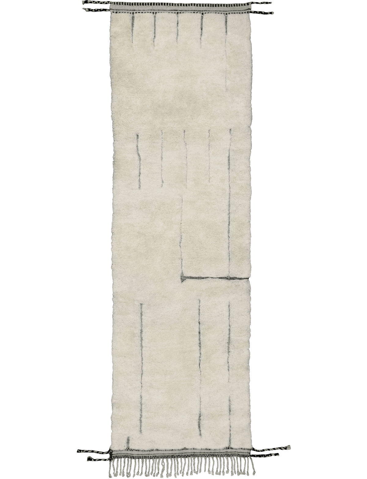 Salwa is a Berber Moroccan Rug part of the Mamounia Collection by Sahrai, a Collection conveying the spirit of North-African nomadic tribes. Salwa is defined by a soft, tactile surface and a warm ivory field animated by delicate charcoal linear accents.