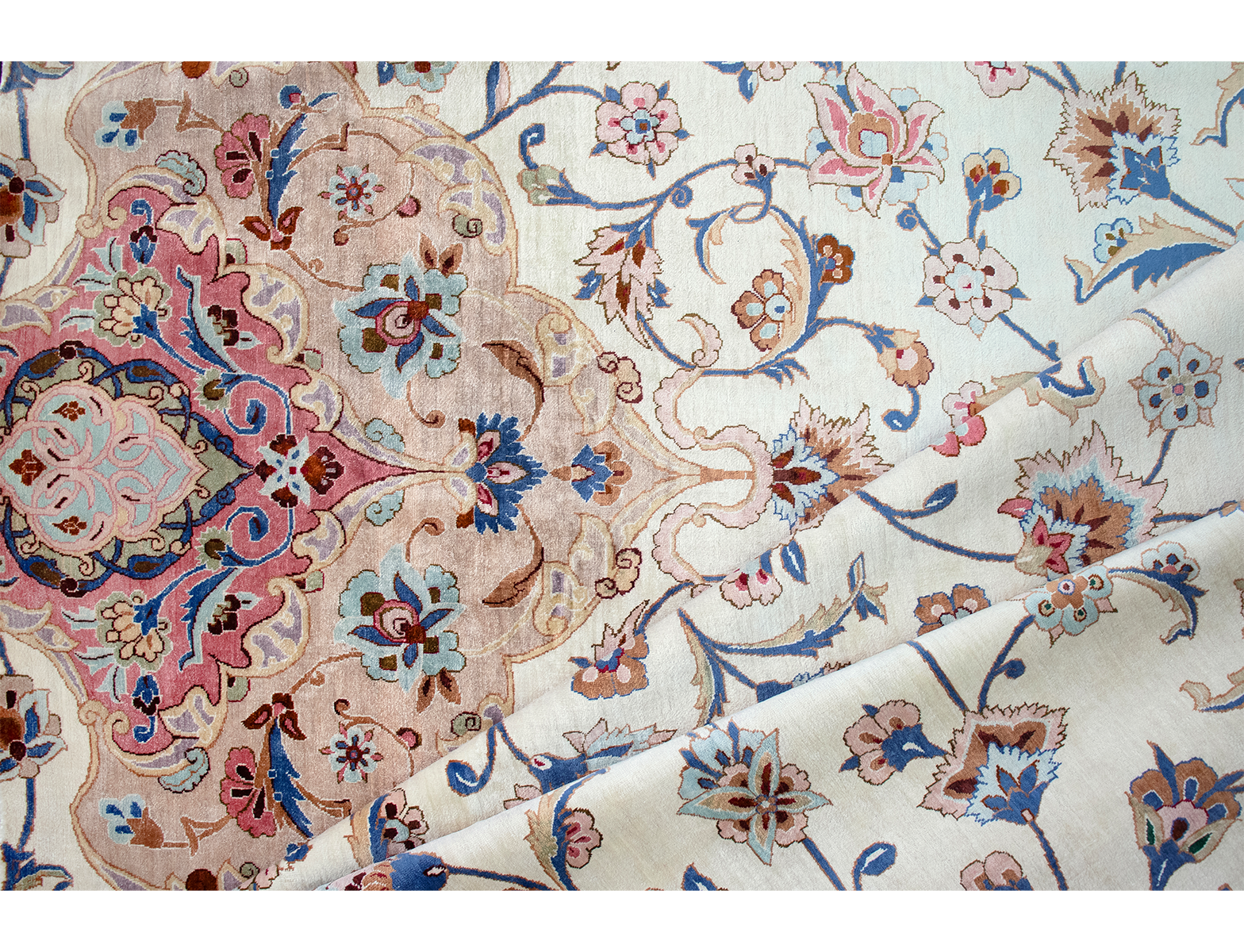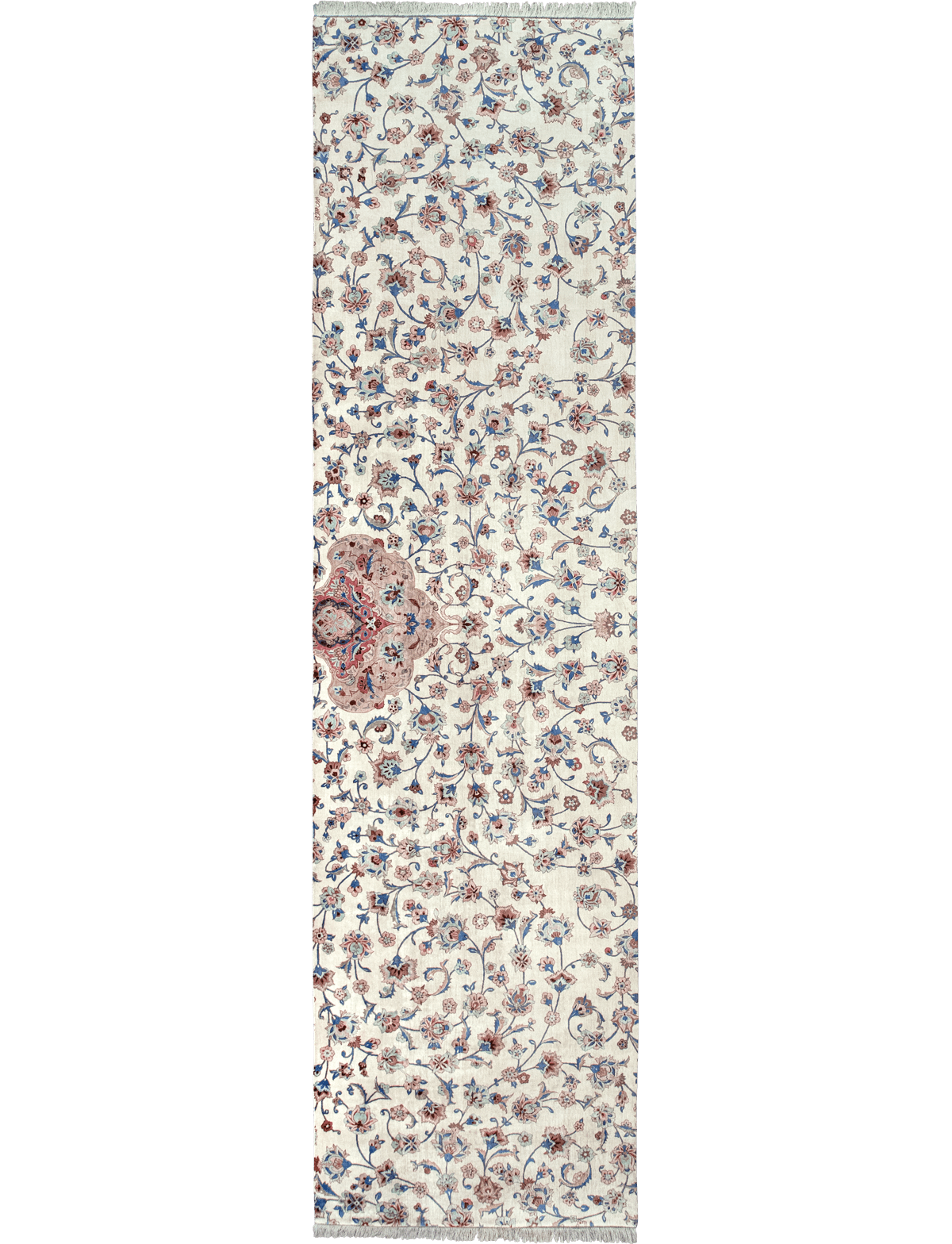 Roonak is part of the Parsa Collection by Sahrai. This unique runner is distinguished by its delicate all-over floral composition, enlivened by a partial medallion detail that gives the design a refined and unexpected character. Roonak is Finely Handknotted in all Silk in the following dimension: